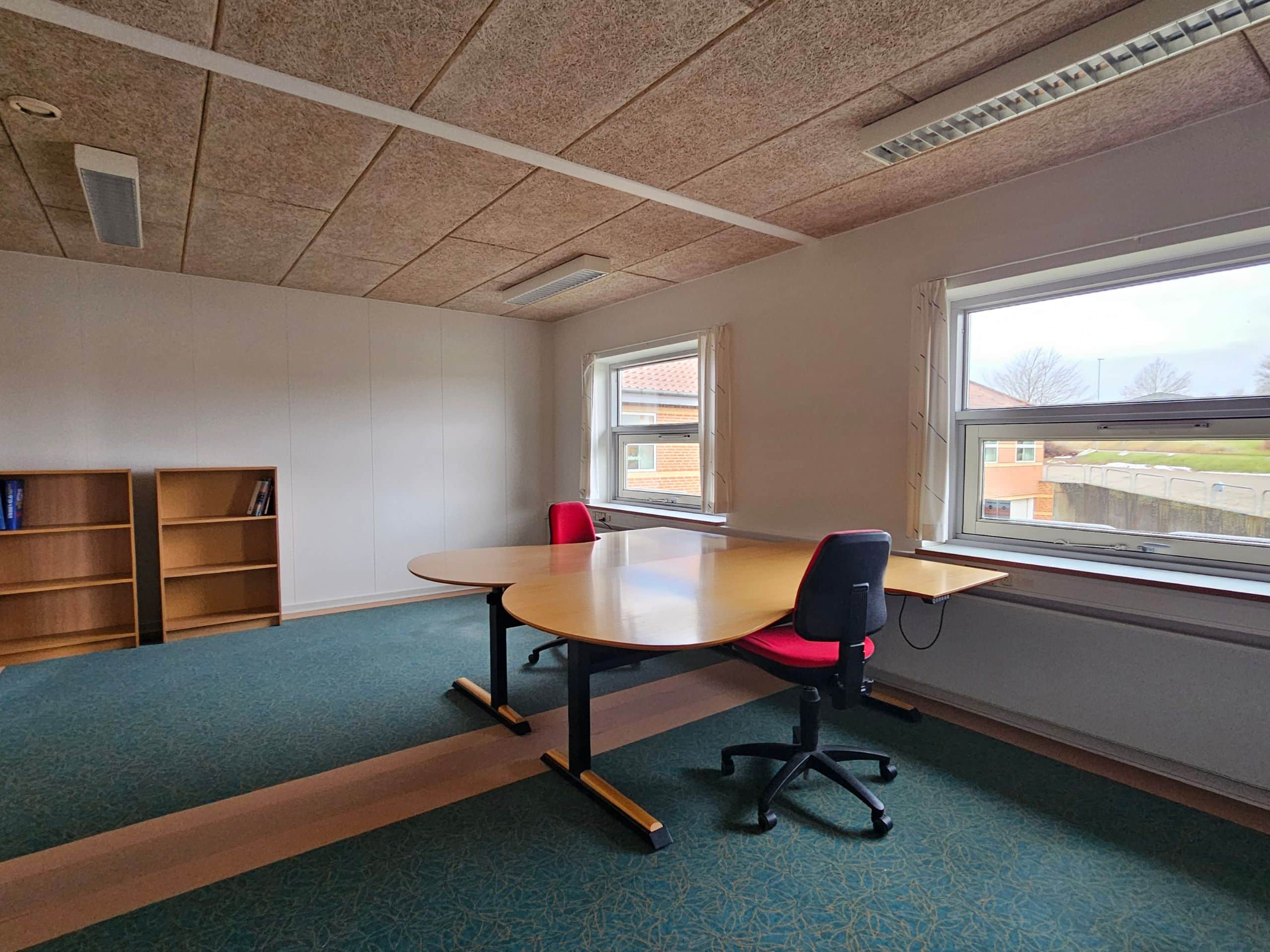 Hos os bliver du en del af et uformelt kontorfællesskab med plads til netværk og sparring, samtidig med at du får adgang til mødelokaler, café med gratis kaffe, te og kakao samt gratis parkering.